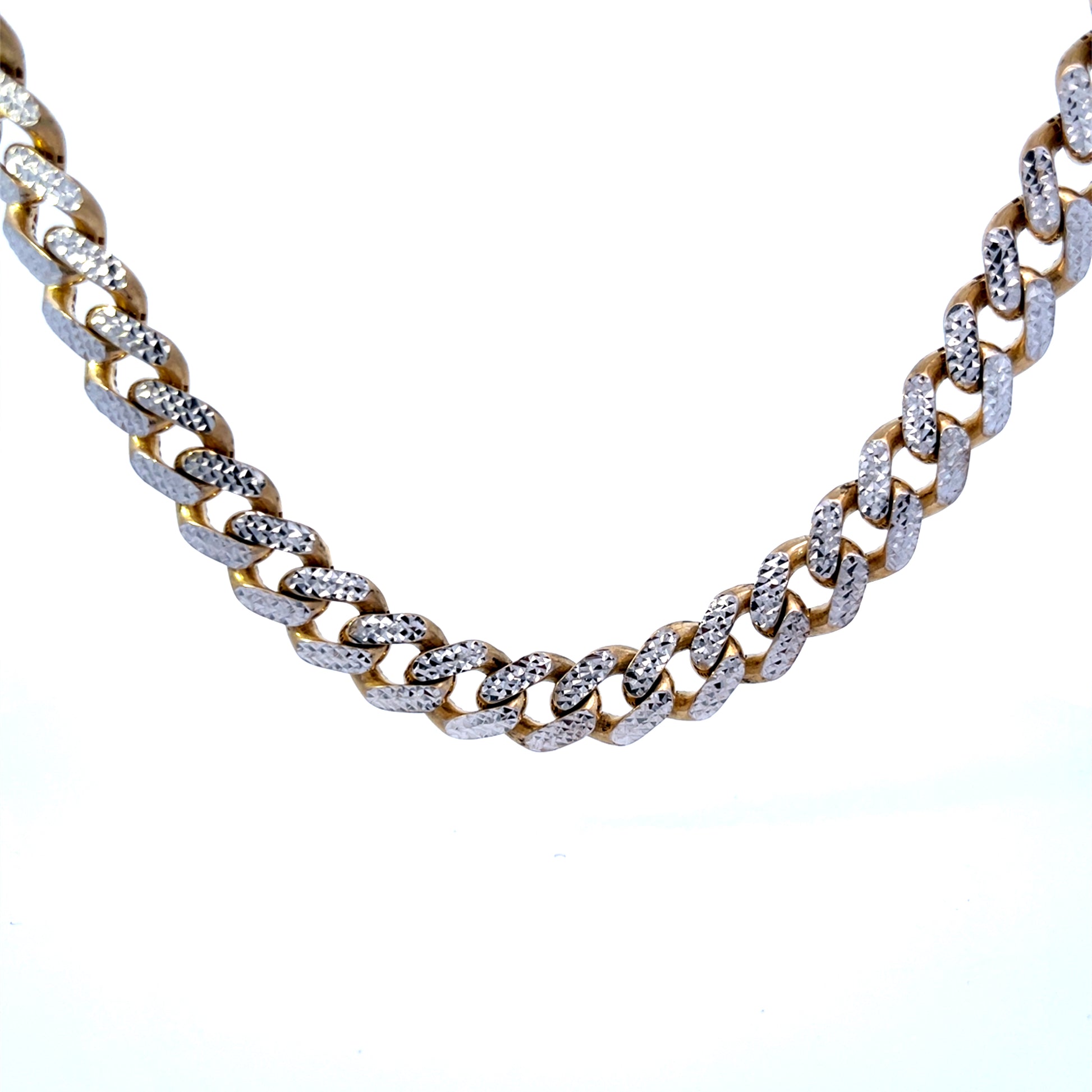 Diamond Cut Design: ~4mm wide curb links with faceted cuts for enhanced brilliance.