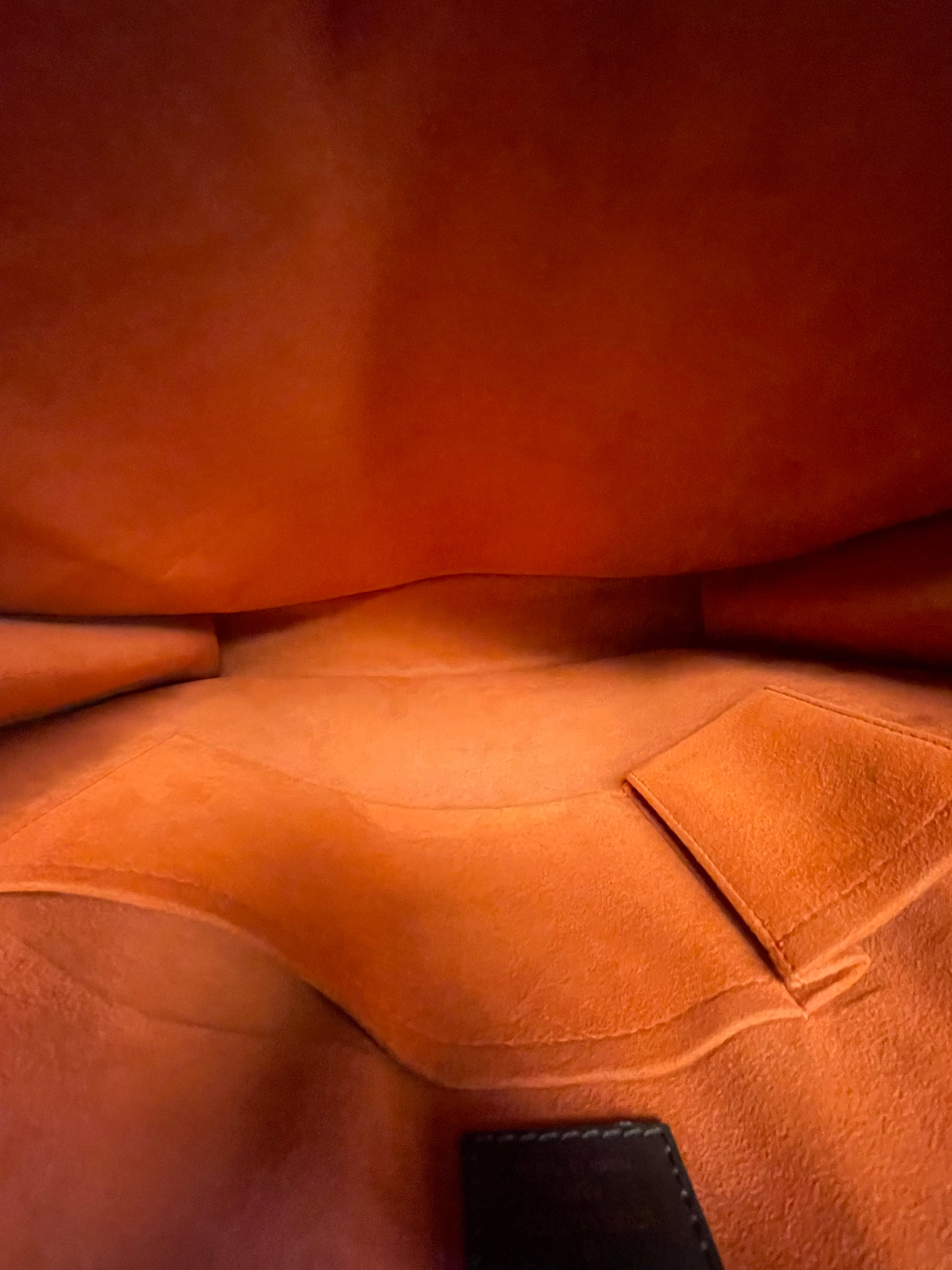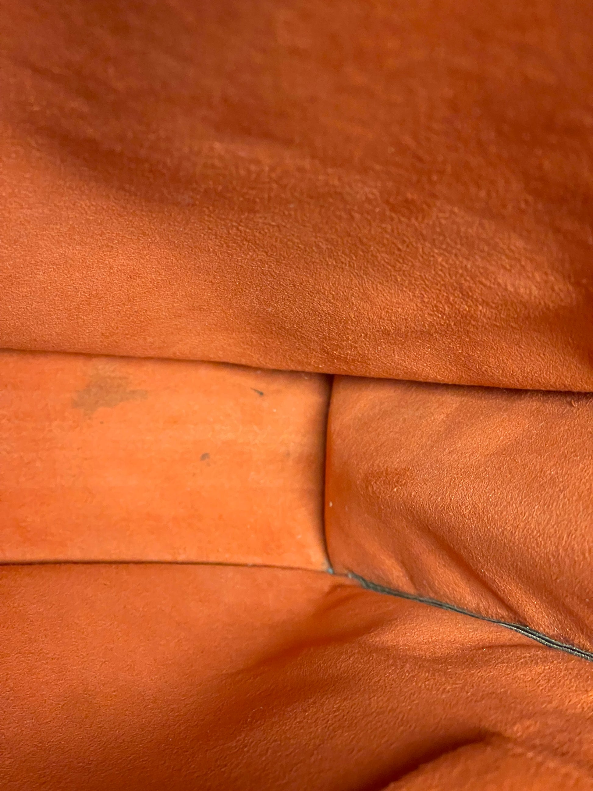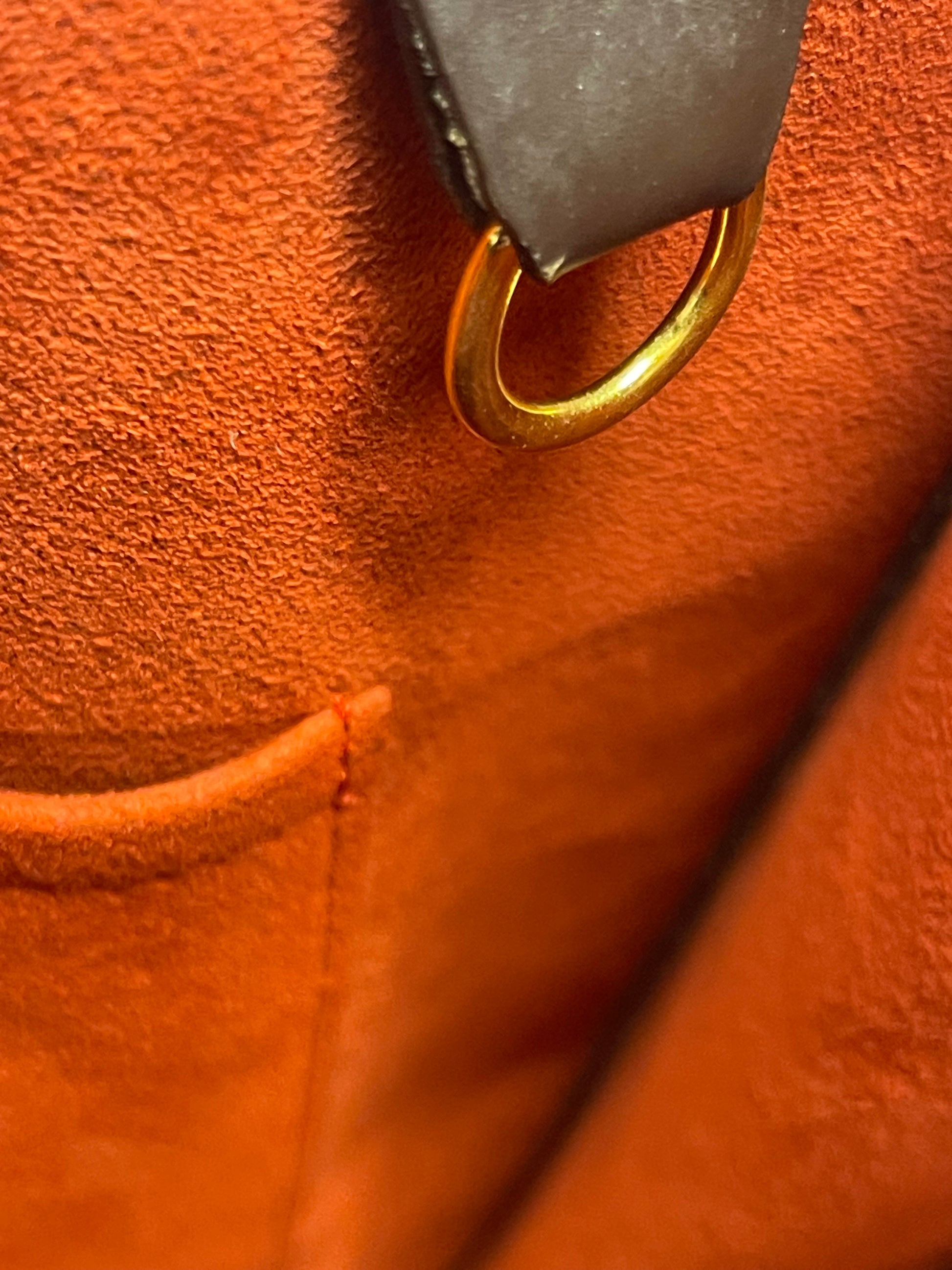 Elevate your collection with this vintage Louis Vuitton Damier Ebene Venice Sac Plat Tote GM (14” W x 15” H x 3.5” D), crafted in France, January 2004 (MI0014). In good condition with minor wear on vachetta leather handles and corners, this iconic tote features a Saffron orange microfiber lining and zip-top closure. Entrupy authenticated for guaranteed authenticity. No accessories. A rare Damier Ebene gem for timeless elegance. Shop now at CenTex Luxury Goods!